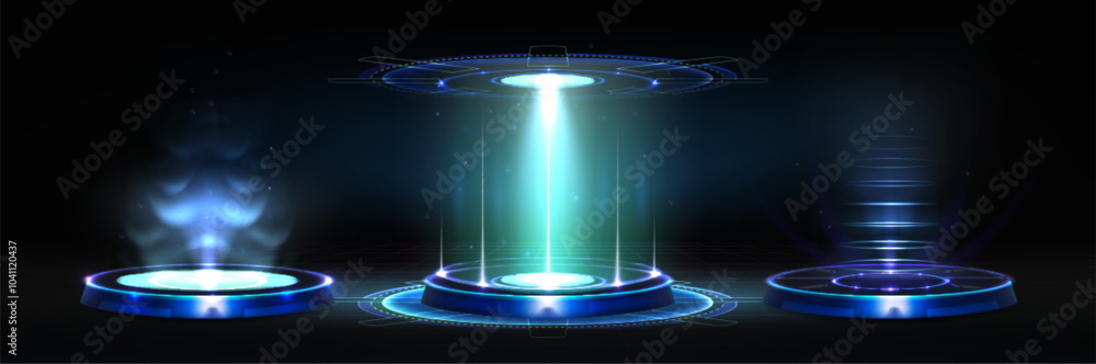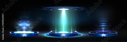 Futuristic hi tech portal with blue neon light glow effect for game ui design - realistic 3d vector iWall mural