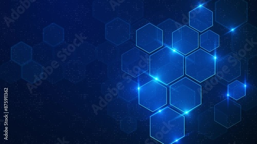 Wall mural futuristic high-tech hexagons honeycomb surface hexagonal grid pattern animation deep blue. clean ba