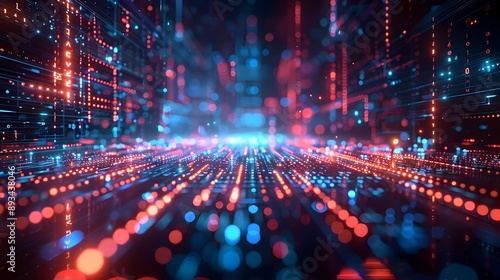 Wall mural : Futuristic holographic display with vibrant digital data streams and cyber background