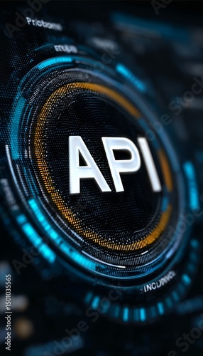Wall mural futuristic hud display featuring api, application programming interface acronym, technology concept