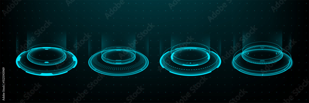 Wall mural futuristic hud elements or hi tech portal in blue light. abstract digital interface and virtual real - Wall murals Wall mural futuristic hud elements or hi tech portal in blue light. abstract digital interface and virtual real - Wall murals