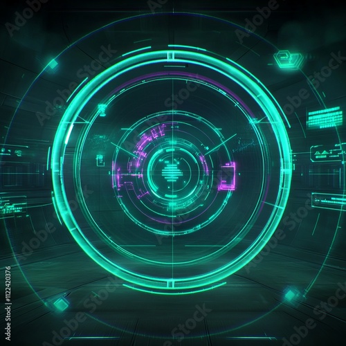 Wall mural futuristic hud interface with glowing circles and digital elements. - Wall murals Wall mural futuristic hud interface with glowing circles and digital elements. - Wall murals