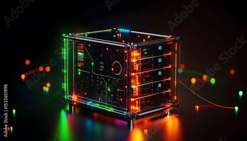 Wall mural futuristic illuminated server box with glowing circuits. - Wall murals Wall mural futuristic illuminated server box with glowing circuits. - Wall murals