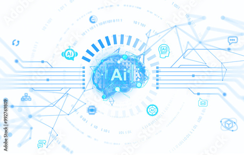 The watermark will not be included on Wall mural.: Futuristic image showing ai technology interface with glowing blue graphics and icons - isolated on w