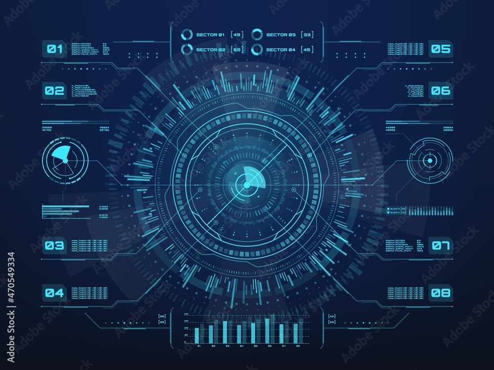 Wall mural futuristic infographics of hud ui interface, vector visual business data charts and information grap - Wall murals Wall mural futuristic infographics of hud ui interface, vector visual business data charts and information grap - Wall murals