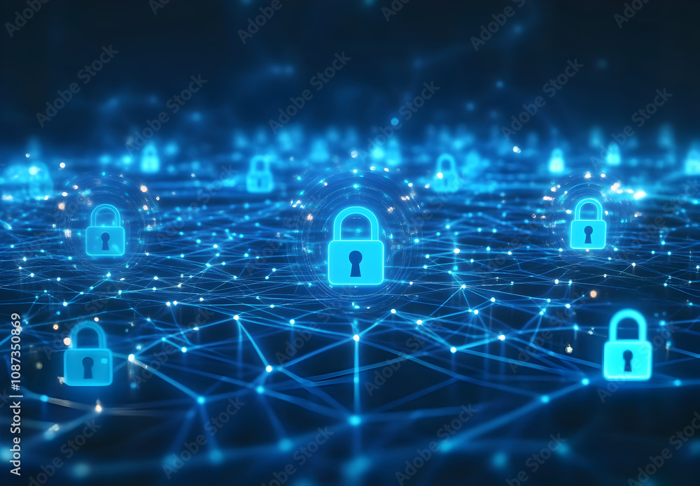 Wall mural futuristic interface displaying secure network. - Wall murals Wall mural futuristic interface displaying secure network. - Wall murals