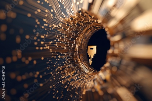 The watermark will not be included on Wall mural.: Futuristic keyhole with brass elements and patterns