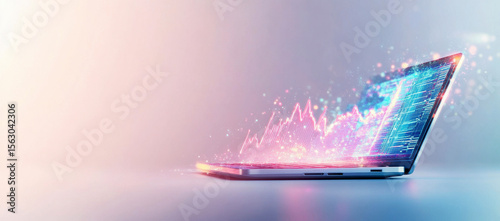 Wall mural futuristic laptop displaying glowing data and analytics visualizations - Wall murals Wall mural futuristic laptop displaying glowing data and analytics visualizations - Wall murals