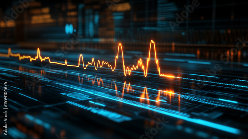 Wall mural : Futuristic medical background with glowing cyan heart rate graph pulsing on a dark digital screen - i