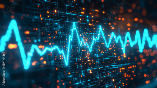 Wall mural : Futuristic medical background with glowing cyan heart rate graph pulsing on a dark digital screen - i