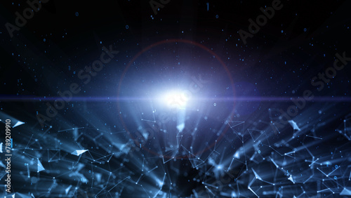 Futuristic modern space with bright light lens flare and binary numbers illustration - dark backgrounWall mural