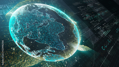 Futuristic motion graphic user interface head up display screen with holographic earth and digital dWall mural