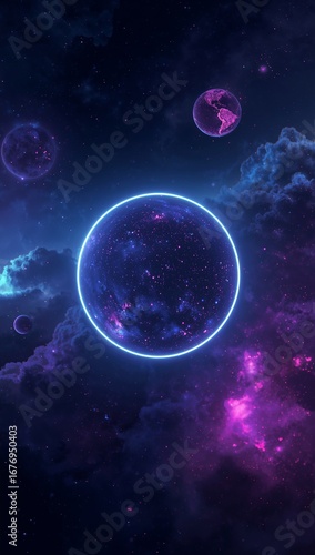 Wall mural futuristic neon glowing spheres floating in infinite space symbolizing ai driven creative universes - Wall murals Wall mural futuristic neon glowing spheres floating in infinite space symbolizing ai driven creative universes - Wall murals