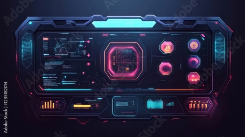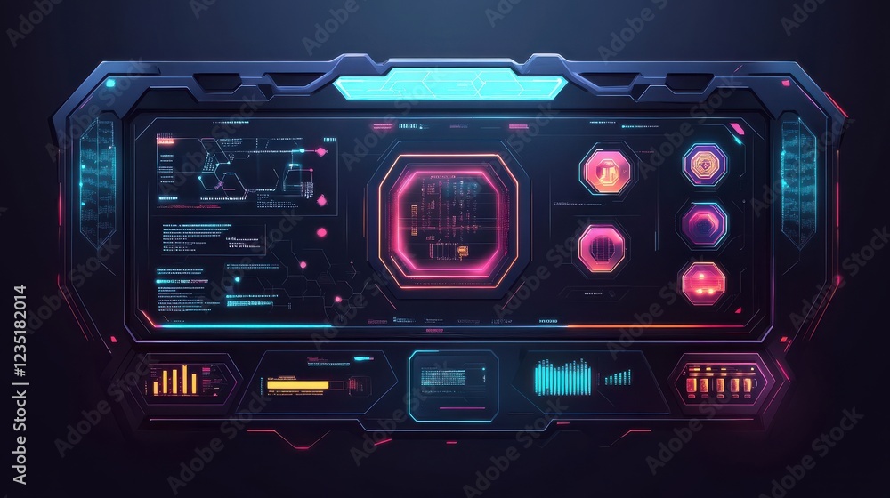 The watermark will not be included on Wall mural.: Futuristic neon user interface design for technology dashboard