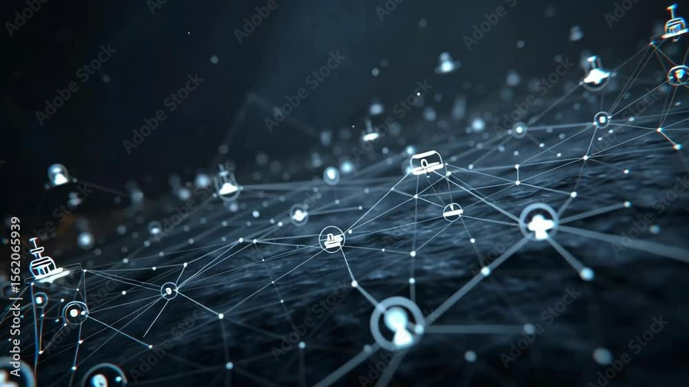 Wall mural futuristic network connecting digital devices and user profiles with glowing lines and nodes, repres - Wall murals Wall mural futuristic network connecting digital devices and user profiles with glowing lines and nodes, repres - Wall murals