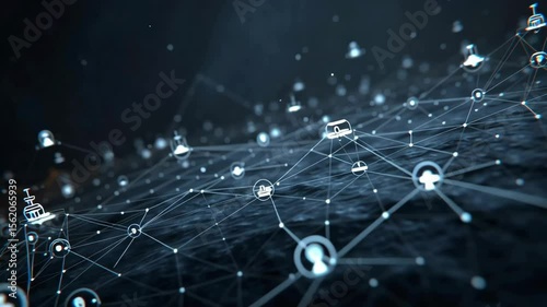 Wall mural : Futuristic network connecting digital devices and user profiles with glowing lines and nodes, repres