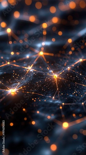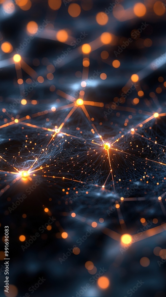 Wall mural futuristic network connections with glowing nodes and lines in a dark background. - Wall murals Wall mural futuristic network connections with glowing nodes and lines in a dark background. - Wall murals