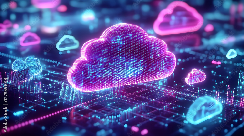 Wall mural : Futuristic network of cloud computing and blockchain technology - a vibrant 3d polygonal illustratio
