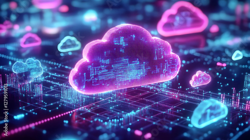 The watermark will not be included on Wall mural.: Futuristic network of cloud computing and blockchain technology - a vibrant 3d polygonal illustratio