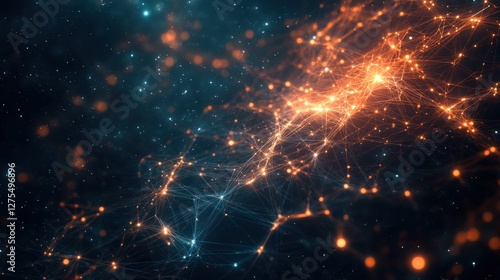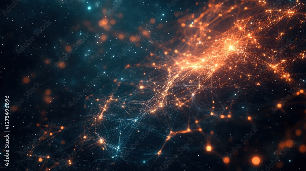 Wall mural : Futuristic network of glowing nodes and lines in dark space