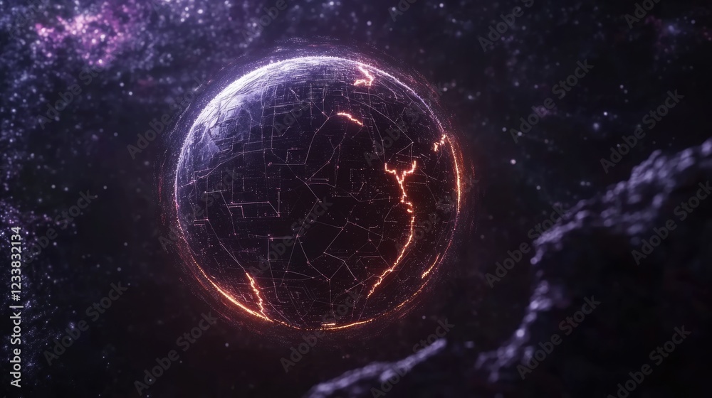 Wall mural futuristic planet with glowing blockchain connections in space ideal for technology and innovation t - Wall murals Wall mural futuristic planet with glowing blockchain connections in space ideal for technology and innovation t - Wall murals