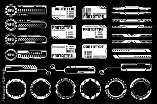 Futuristic prototype and loading bar interface design elements hud ui templates simple layout setWall mural