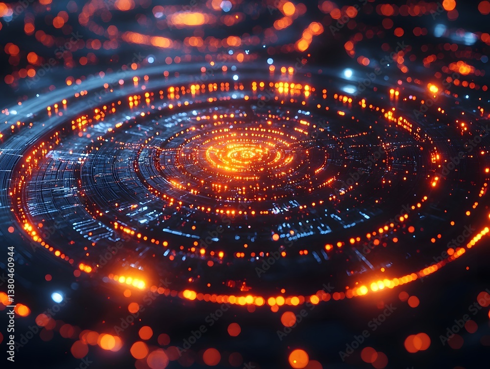The watermark will not be included on Wall mural.: Futuristic quantum networking hub with interconnected light pulses