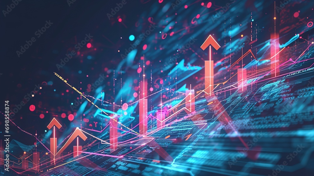 Wall mural futuristic raise arrow chart digital transformation abstract technology background. big data and bus - Wall murals Wall mural futuristic raise arrow chart digital transformation abstract technology background. big data and bus - Wall murals