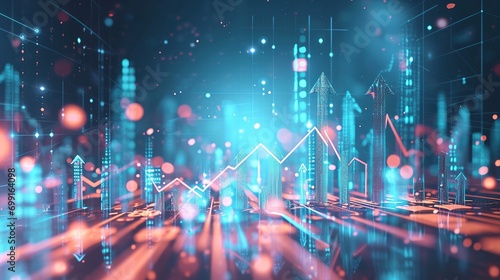 Wall mural futuristic raise arrow chart digital transformation abstract technology background. big data and bus - Wall murals Wall mural futuristic raise arrow chart digital transformation abstract technology background. big data and bus - Wall murals