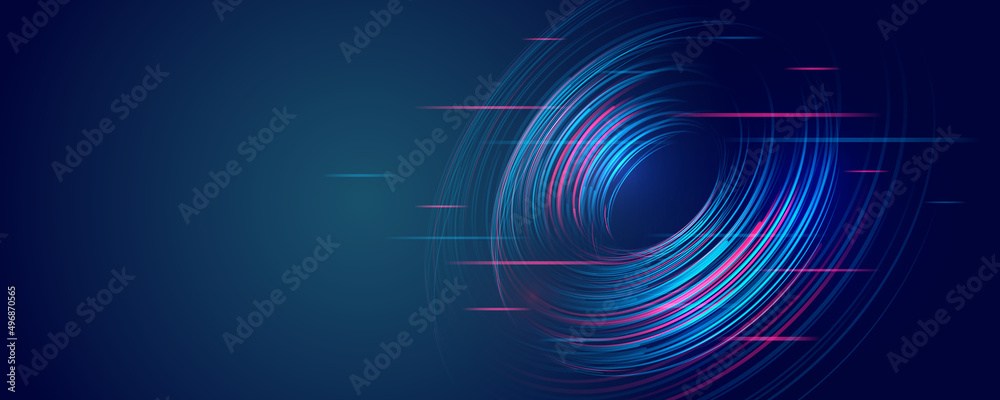 Wall mural futuristic red and blue stripes in the form of a ring. modern high-tech background for presentations