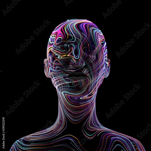 The watermark will not be included on Wall mural.: Futuristic rendering of a human face - concept of artificial intelligence - 3d render -