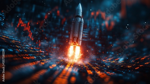 The watermark will not be included on Wall mural.: Futuristic rocket launch on a digital stock market chart background, a business concept for a startu
