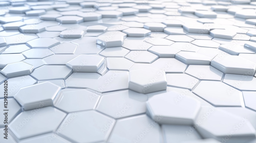 Wall mural : Futuristic science and technology background with blue hexagonal pattern on white, abstract digital