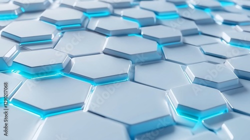 Wall mural futuristic science and technology background with blue hexagonal pattern on white, abstract digital