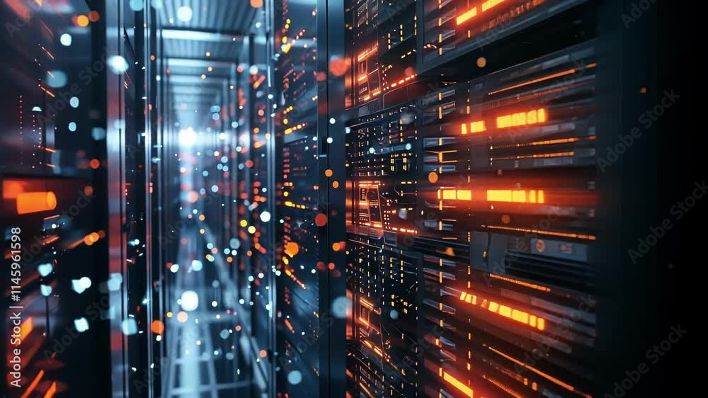Wall mural futuristic server room featuring bokeh and light effects, processing big data and showcasing the pow - Wall murals Wall mural futuristic server room featuring bokeh and light effects, processing big data and showcasing the pow - Wall murals