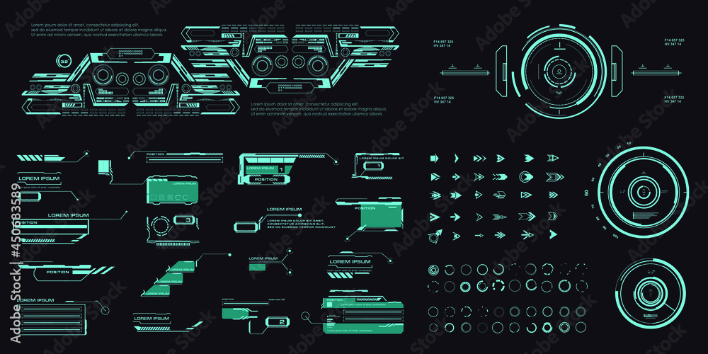 Wall mural futuristic set of elements for hud user interface. collection of titles in the style of hud. labels