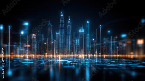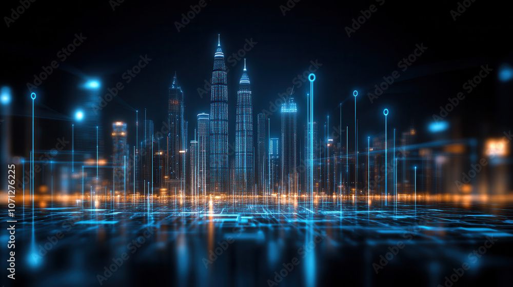 The watermark will not be included on Wall mural.: Futuristic skyline of uae illuminated by digital networks, showcasing advanced architecture and tech