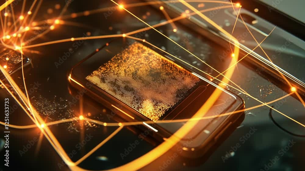 Wall mural futuristic smartphone displaying world map with glowing particles, symbolizing global connectivity a - Wall murals Wall mural futuristic smartphone displaying world map with glowing particles, symbolizing global connectivity a - Wall murals