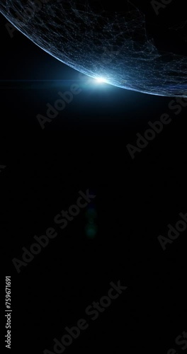 Wall mural : Futuristic space with planet and glowing spotlight loop vertical animation -