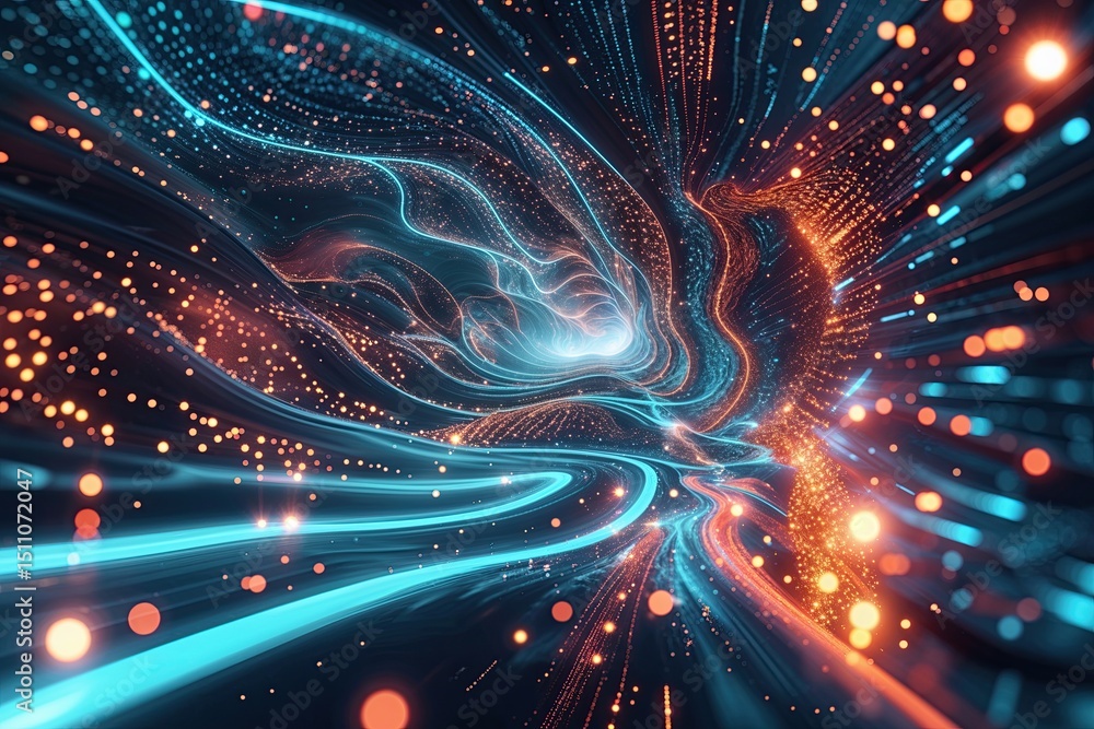 The watermark will not be included on Wall mural.: Futuristic technology abstract background with flowing digital waves and glowing particles