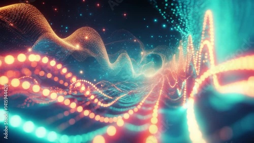 Wall mural futuristic technology and big data visualization with abstract music background and glowing waving d - Wall murals Wall mural futuristic technology and big data visualization with abstract music background and glowing waving d - Wall murals