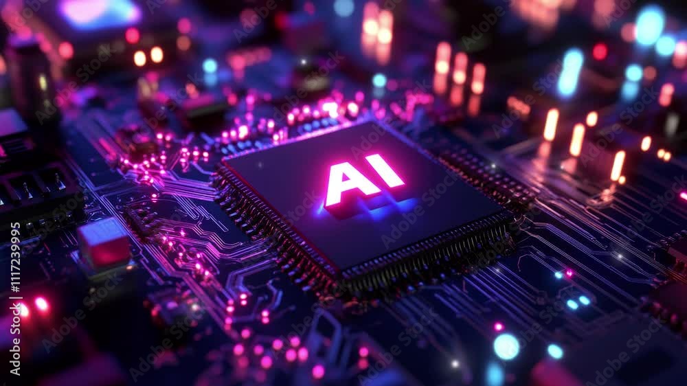 Wall mural : Futuristic technology and digital concept - abstract chip with "ai" symbol on a circuit board backgro