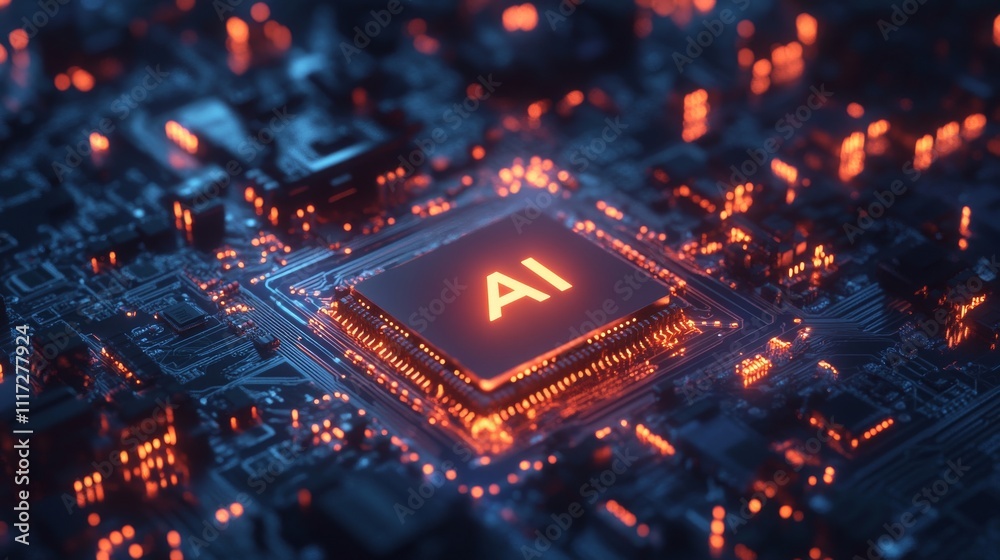 Wall mural : Futuristic technology and digital concept - abstract chip with "ai" symbol on a circuit board backgro