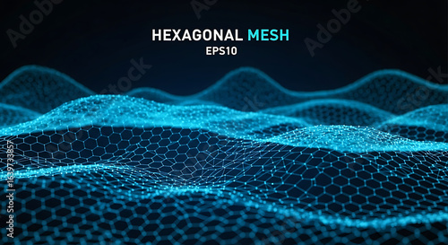 The watermark will not be included on Wall mural.: Futuristic technology background with a glowing blue hexagonal mesh forming a digital wave landscape