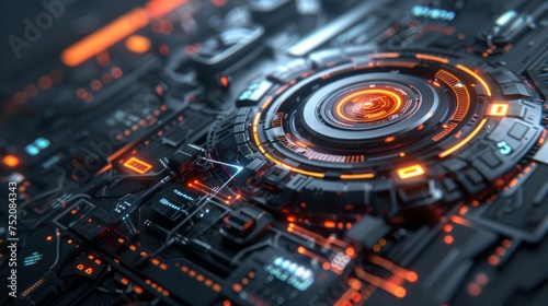 Wall mural : Futuristic technology background with glowing circuit patterns and digital elements, abstract tech i