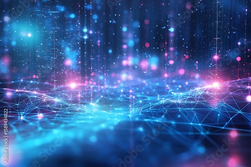 The watermark will not be included on Wall mural.: Futuristic technology background with glowing network connections and data stream visualization
