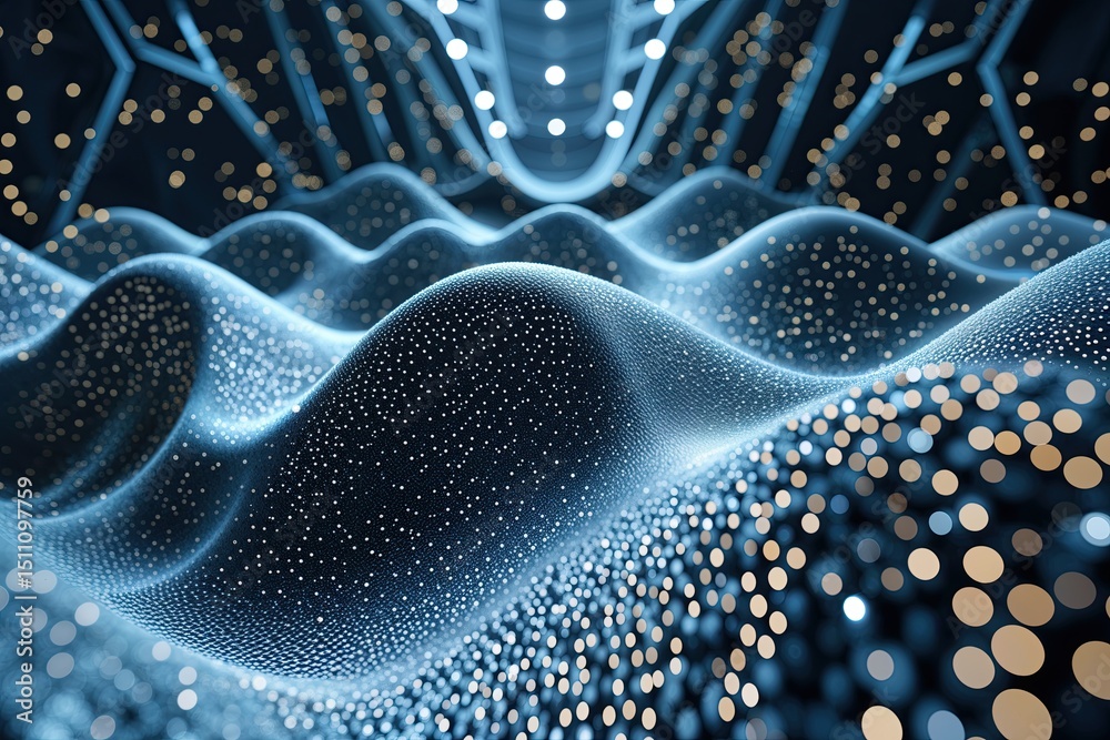 Wall mural futuristic technology background with three dimensional abstract particle wave animation