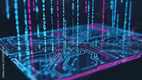 Wall mural Futuristic Technology Circuit Board Data Flow Animation, Tech Data Transfer, Coding Background