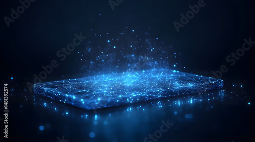 Wall mural futuristic technology display featuring a glowing blue digital platform. networked lines and particl - Wall murals Wall mural futuristic technology display featuring a glowing blue digital platform. networked lines and particl - Wall murals