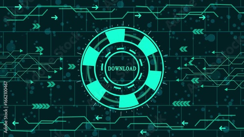 Wall mural : Futuristic technology interface with download icon and digital network background for modern communi